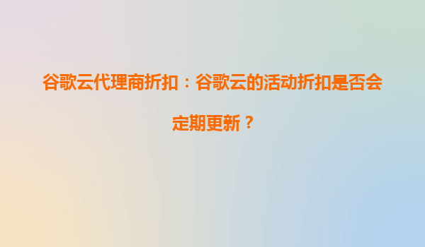 4008-020-360 谷歌云代理商折扣:谷歌云的活動折扣是否會定期更新? 谷歌云折扣活動的動態(tài)性 谷歌云作為全球領(lǐng)先的云計算服務(wù)提供商,其代理商折扣和促銷活動確實會根據(jù)市場策略和季節(jié)性需求進行定期更新。通常,谷歌云會結(jié)...