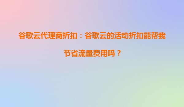 2025-10-02: 谷歌云代理商折扣:如何通過活動(dòng)節(jié)省流量費(fèi)用 在當(dāng)今數(shù)字化時(shí)代,云計(jì)算已成為企業(yè)運(yùn)營不可或缺的一部分。谷歌云作為全球領(lǐng)先的云服務(wù)提供商,憑借其強(qiáng)大的基礎(chǔ)設(shè)施和靈活的定價(jià)模式,吸引了眾多企業(yè)用戶。而通過...