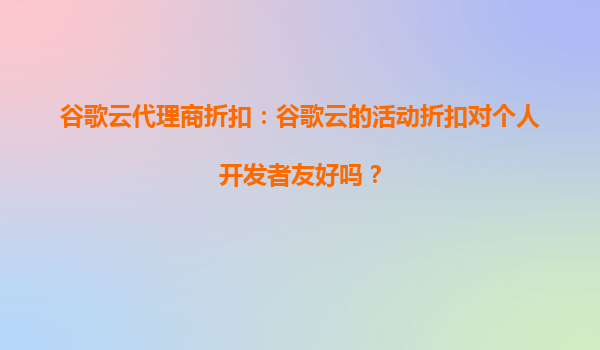 2025-10-01谷歌云代理商折扣:谷歌云的新用戶折扣是否適合我現(xiàn)在的項目? 引言 在當(dāng)今數(shù)字化時代,云計算已成為企業(yè)運營和項目開發(fā)的核心基礎(chǔ)設(shè)施。谷歌云(GoogleCloud...