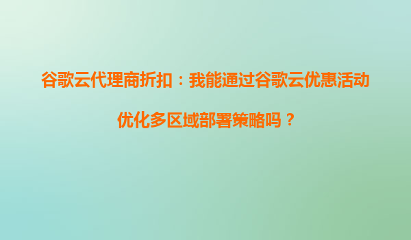 2025-09-27> 谷歌云代理商折扣:我能通過谷歌云優(yōu)惠活動優(yōu)化多區(qū)域部署策略嗎? 一、谷歌云的優(yōu)勢與多區(qū)域部署 谷歌云(GoogleCloudPlatform,GCP)作為全球領(lǐng)先的云計算服務(wù)提供商,憑借其強大的基礎(chǔ)...