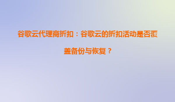 2025-09-22谷歌云代理商折扣:谷歌云的折扣活動(dòng)是否覆蓋備份與恢復(fù)? 引言 隨著云計(jì)算的普及,越來(lái)越多的企業(yè)選擇將業(yè)務(wù)遷移到云端。谷歌云(GoogleCloud)作為全球領(lǐng)先的云服務(wù)提供商之一,...