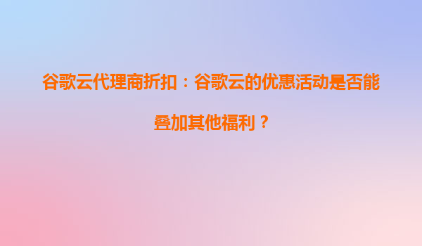2025-09-20谷歌云代理商折扣:谷歌云的優(yōu)惠活動是否能疊加其他福利? 一、谷歌云的核心優(yōu)勢 谷歌云(GoogleCloud)作為全球領(lǐng)先的云計算服務(wù)提供商,憑借其強大的技術(shù)實...