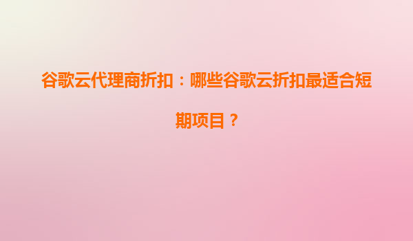2025-09-19谷歌云代理商折扣:哪些谷歌云折扣最適合短期項(xiàng)目? 引言 在當(dāng)今數(shù)字化時(shí)代,越來(lái)越多的企業(yè)和開(kāi)發(fā)者選擇云計(jì)算平臺(tái)來(lái)滿足其業(yè)務(wù)需求。而作為全球領(lǐng)先的云計(jì)算服務(wù)提供商之一,谷歌云以其高性能、高可靠性...