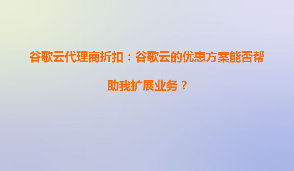 2025-09-19谷歌云代理商折扣:谷歌云的折扣是否會影響服務(wù)體驗(yàn)? 1.谷歌云的代理商折扣機(jī)制解析 谷歌云通過其全球代理商網(wǎng)絡(luò)為企業(yè)用戶提供靈活的成本優(yōu)化方案,其中包含階梯式用量折扣、承諾使用折扣(CommittedUs...