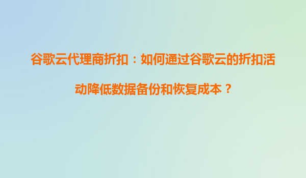 2025-09-18谷歌云代理商折扣:如何通過谷歌云的折扣活動(dòng)降低數(shù)據(jù)備份和恢復(fù)成本? 引言 在云計(jì)算時(shí)代,數(shù)據(jù)備份和恢復(fù)是企業(yè)IT基礎(chǔ)設(shè)施中不可或缺的一部分,但隨之而來的成本壓力也讓許多企業(yè)望而卻步。谷歌云憑借其強(qiáng)大的技...