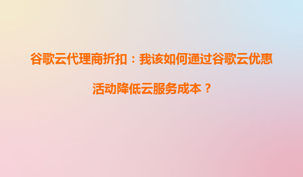 2025-09-18谷歌云代理商折扣:谷歌云的折扣活動(dòng)能否覆蓋我常用的服務(wù)? 隨著云計(jì)算技術(shù)的普及,越來越多的企業(yè)開始將業(yè)務(wù)遷移到云端,以降低運(yùn)營成本、提高擴(kuò)展性和靈活性。谷歌云(GoogleCloud)作為全球領(lǐng)先的云計(jì)算平臺之...