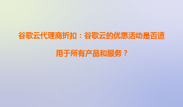 4008-020-360 谷歌云代理商折扣:谷歌云的優(yōu)惠活動(dòng)是否適用于所有產(chǎn)品和服務(wù)? 一、谷歌云優(yōu)惠活動(dòng)概覽 谷歌云(GoogleCloudPlatform,GCP)作為全球領(lǐng)先的云計(jì)算服務(wù)提供商之一,經(jīng)常推出各種優(yōu)惠...