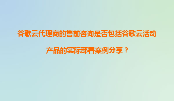 2025-11-06谷歌云代理商售前咨詢是否包括實(shí)際部署案例分享? 前言 在數(shù)字化轉(zhuǎn)型浪潮中,云計(jì)算已成為企業(yè)提升效率、降低成本的戰(zhàn)略選擇。作為全球領(lǐng)先的云服務(wù)提供商,谷歌云(GoogleCloud)憑借其強(qiáng)大...