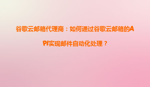 谷歌云郵箱代理商:如何通過谷歌云郵箱的API實現郵件自動化處理?