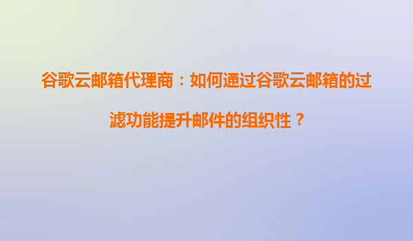 谷歌云郵箱代理商:如何通過谷歌云郵箱的過濾功能提升郵件的組織性?