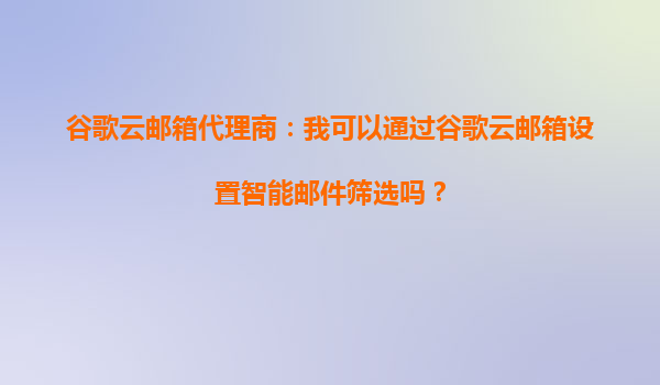 谷歌云郵箱代理商:我可以通過谷歌云郵箱設置智能郵件篩選嗎?