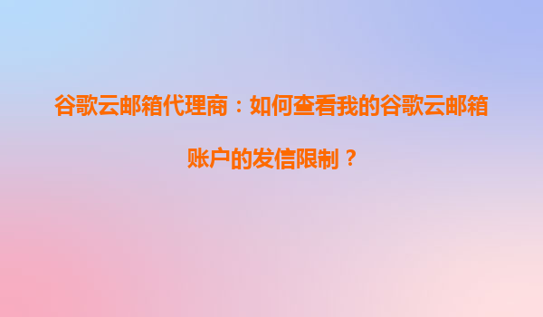 谷歌云郵箱代理商:如何查看我的谷歌云郵箱賬戶的發(fā)信限制?