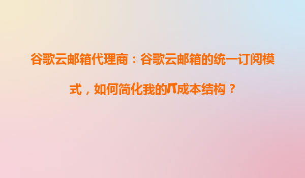 谷歌云郵箱代理商:如何通過統(tǒng)一訂閱模式簡化IT成本結(jié)構(gòu)