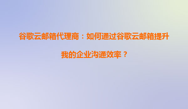 2025-09-16提升團隊郵件響應速度的谷歌云郵箱解決方案 引言:高效溝通的數(shù)字化基石 在當今快節(jié)奏的商業(yè)環(huán)境中,電子郵件的響應速度直接影響團隊協(xié)作效率。作為谷歌云官方授權(quán)的代理商,我們深知谷歌云郵箱(GmailforBusines...