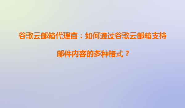 2025-09-16谷歌云郵箱代理商:如何通過谷歌云郵箱支持郵件內(nèi)容的多種格式? 一、引言 在數(shù)字化轉(zhuǎn)型的背景下,電子郵件仍然是企業(yè)溝通的重要工具之一。隨著業(yè)務(wù)需求的多樣化,郵件內(nèi)容的格式也日益...