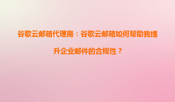 2025-09-16谷歌云郵箱代理商:谷歌云郵箱如何幫助我提升企業(yè)郵件的合規(guī)性? 1.企業(yè)郵件合規(guī)性的重要性 在現(xiàn)代商業(yè)環(huán)境中,企業(yè)郵件的合規(guī)性至關(guān)重要。無論是金融、醫(yī)療、法律還是其他行業(yè),企業(yè)都需要確保郵件內(nèi)容的...
