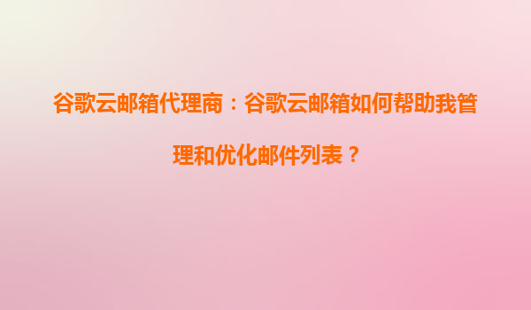 2025-09-16谷歌云郵箱代理商:谷歌云郵箱如何幫助我管理和優(yōu)化郵件列表? 一、引言:為什么選擇谷歌云郵箱進(jìn)行郵件列表管理? 在數(shù)字化溝通時(shí)代,高效管理和優(yōu)化郵件列表是企業(yè)與客戶保持聯(lián)系的關(guān)鍵。谷歌云郵箱(Google...