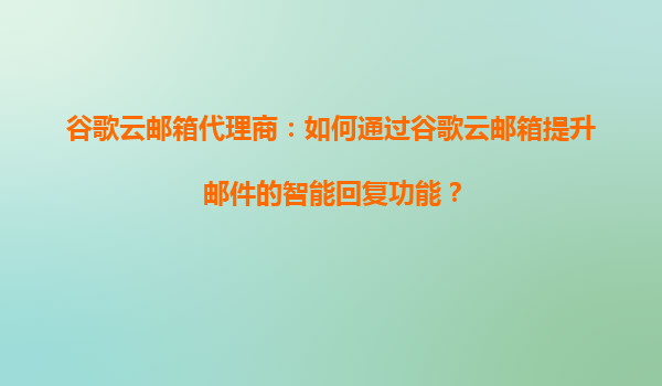 2025-09-16谷歌云郵箱代理商:如何通過(guò)谷歌云郵箱提升郵件的智能回復(fù)功能 一、引言 在當(dāng)今快節(jié)奏的商業(yè)環(huán)境中,高效的郵件溝通是企業(yè)成功的關(guān)鍵因素之一。谷歌云郵箱(GmailforBusiness)作為業(yè)...