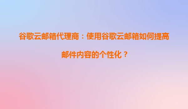 2025-09-16谷歌云郵箱代理商:使用谷歌云郵箱如何提高郵件內(nèi)容的個(gè)性化? 一、引言:郵件個(gè)性化在現(xiàn)代營(yíng)銷(xiāo)中的重要性 在數(shù)字化營(yíng)銷(xiāo)時(shí)代,郵件仍然是企業(yè)觸達(dá)客戶、提升轉(zhuǎn)化率的重要渠道之一。然而,隨著用戶對(duì)泛...