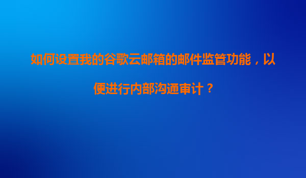 2025-11-06如何設置谷歌云郵箱的郵件監(jiān)管功能以實現(xiàn)內部溝通審計 一、谷歌云郵箱監(jiān)管功能的核心價值 在數(shù)字化辦公場景中,郵件作為企業(yè)內部溝通的重要載體,其合規(guī)性與安全性至關重要。谷歌云郵箱...
