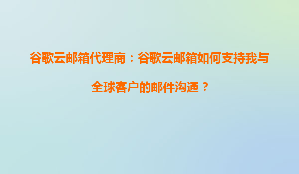2025-09-16谷歌云郵箱代理商:谷歌云郵箱如何支持我與全球客戶的郵件溝通? 一、谷歌云郵箱的全球化服務(wù)優(yōu)勢(shì) 谷歌云郵箱(GmailforBusiness)作為谷歌云套件(GoogleWorkspace)的核心組件,通過(guò)其...