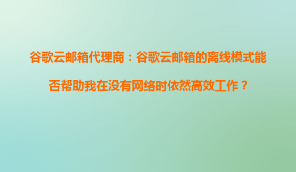 2025-09-16谷歌云郵箱代理商:谷歌云郵箱的離線模式能否幫助我在沒有網(wǎng)絡(luò)時(shí)依然高效工作? 引言:離線辦公的現(xiàn)代需求 在當(dāng)今快節(jié)奏的商業(yè)環(huán)境中,網(wǎng)絡(luò)連接并非總是穩(wěn)定或...