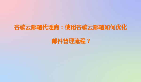 2025-09-16谷歌云郵箱代理商:使用谷歌云郵箱如何優(yōu)化郵件管理流程? 一、引言 在現(xiàn)代企業(yè)運(yùn)營中,高效的郵件管理系統(tǒng)是提升溝通效率、保障信息安全的關(guān)鍵。谷歌云郵箱(GoogleWorkspace)作為全...