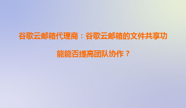 2025-09-16谷歌云郵箱代理商:谷歌云郵箱如何幫助企業(yè)員工提高郵件處理的工作效率? 在當(dāng)今快節(jié)奏的商業(yè)環(huán)境中,高效的郵件處理已成為企業(yè)員工日常工作的關(guān)鍵環(huán)節(jié)。谷歌云郵箱(GoogleWorkspace,原GSuite)作為全...