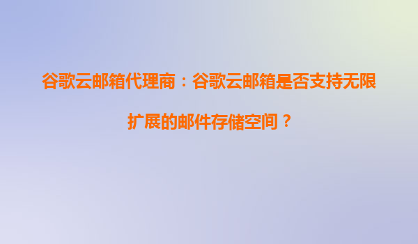 2025-09-16谷歌云郵箱代理商解析:谷歌云郵箱的存儲(chǔ)空間策略 作為谷歌云郵箱代理商,我們經(jīng)常收到客戶關(guān)于存儲(chǔ)空間的疑問(wèn)。其中最常見(jiàn)的問(wèn)題是:“谷歌云郵箱是否支持無(wú)限擴(kuò)展的郵件存儲(chǔ)空間?”本文將深入探討這一問(wèn)題,...