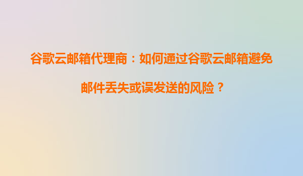 2025-09-16如何通過(guò)谷歌云郵箱避免郵件丟失或誤發(fā)送的風(fēng)險(xiǎn) 引言:郵件安全的重要性 在現(xiàn)代商務(wù)溝通中,電子郵件是不可或缺的工具,但其安全性也時(shí)常面臨挑戰(zhàn),比如郵件丟失、誤發(fā)送或泄露等問(wèn)題。谷...