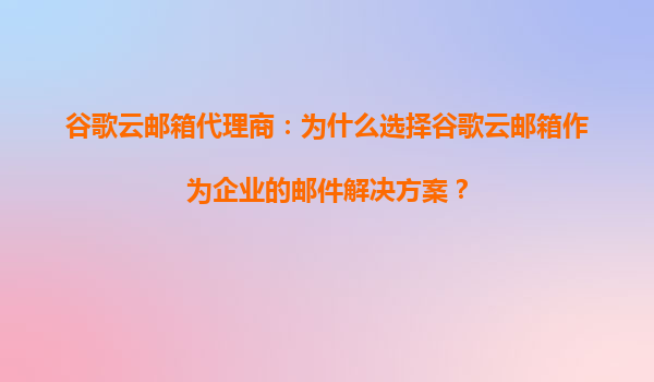 2025-09-16谷歌云郵箱代理商:為什么選擇谷歌云郵箱作為企業(yè)的郵件解決方案? 一、引言 在數(shù)字化時(shí)代,企業(yè)的高效溝通離不開穩(wěn)定、安全的電子郵件系統(tǒng)。谷歌云郵箱(GmailforBusiness)作為全球...