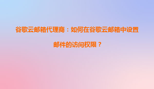 2025-09-16谷歌云郵箱代理商:詳解郵件訪問權(quán)限設(shè)置與平臺優(yōu)勢 一、谷歌云郵箱的權(quán)限管理核心價值 谷歌云郵箱(GoogleWorkspace)作為企業(yè)級電子郵件解決方案,提供精細(xì)化的權(quán)限控制系統(tǒng)。通過層級...