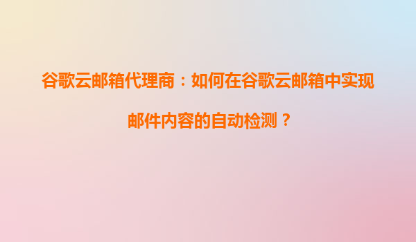 2025-09-16谷歌云郵箱代理商:如何在谷歌云郵箱中實現(xiàn)郵件內(nèi)容的自動檢測? 引言 在現(xiàn)代企業(yè)通信中,電子郵件是不可或缺的工具。然而,隨著郵件數(shù)量的增加,如何高效管理并確保郵件內(nèi)容的安全性成...