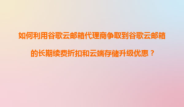 2025-11-05如何利用谷歌云郵箱代理商爭(zhēng)取到谷歌云郵箱的長(zhǎng)期續(xù)費(fèi)折扣和云端存儲(chǔ)升級(jí)優(yōu)惠? 一、谷歌云郵箱的核心優(yōu)勢(shì) 谷歌云郵箱(GoogleWorkspace)作為全球領(lǐng)先的企業(yè)級(jí)郵箱解決方案,其核心競(jìng)爭(zhēng)力體現(xiàn)在以下幾個(gè)方面: ...