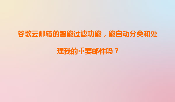 2025-11-05谷歌云郵箱智能過濾:高效分類與處理重要郵件 在現(xiàn)代職場(chǎng)與個(gè)人通訊中,高效管理郵件是提升生產(chǎn)力的關(guān)鍵。谷歌云郵箱(Gmail)憑借其強(qiáng)大的智能過濾功能,為用戶提供了自動(dòng)化分類、優(yōu)先級(jí)排序和智...