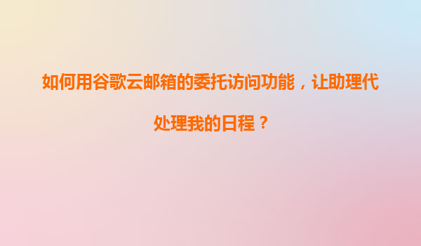 2025-11-05利用谷歌云郵箱委托功能高效管理日程:賦能團(tuán)隊(duì)協(xié)作 谷歌云郵箱委托功能概述 谷歌云郵箱的委托訪問(Delegation)功能允許用戶授權(quán)其他人員代為處理郵箱中的特定事務(wù),包括收發(fā)郵件、管理日歷日程等。該功能通過...