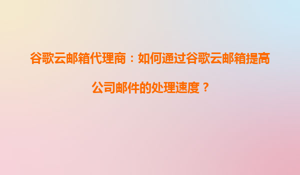 2025-09-16谷歌云郵箱代理商:如何通過谷歌云郵箱提高公司郵件的處理速度? 引言 在當今快節奏的商業環境中,高效的郵件處理能力是企業溝通和運營的關鍵。谷歌云郵箱(Gma...