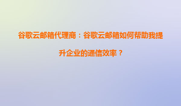 4008-020-360 谷歌云郵箱代理商:谷歌云郵箱如何幫助我提高郵件的傳輸速度? 一、引言 在當(dāng)今快節(jié)奏的商業(yè)環(huán)境中,電子郵件是企業(yè)和個人日常溝通不可或缺的工具。郵件的傳輸速度直接影響著工作效率和客戶滿意度。如果您正在...