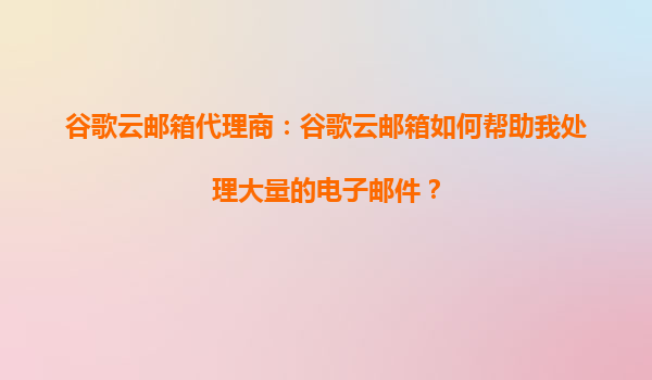 2025-09-05谷歌云郵箱如何幫助我處理大量的電子郵件 在現(xiàn)代商業(yè)環(huán)境中,電子郵件仍然是溝通的主要方式之一。對于企業(yè)或個人來說,每天可能需要處理大量的電子郵件,如果沒有高效的工具支持,可能會浪費大量時間并影響工作效率...