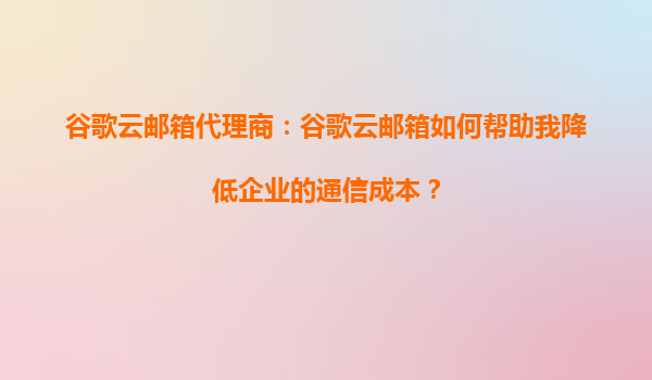 2025-09-04谷歌云郵箱代理商:谷歌云郵箱如何幫助我降低企業(yè)的通信成本? 一、谷歌云郵箱的核心優(yōu)勢 谷歌云郵箱(GoogleWorkspace中的Gmail企業(yè)版)作為全球領(lǐng)先的企業(yè)通...