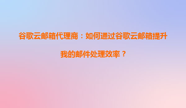 2025-09-04谷歌云郵箱代理商:谷歌云郵箱如何幫助我更好地組織郵件? 引言 在當今快節(jié)奏的商業(yè)環(huán)境中,高效的郵件管理是提升工作效率的關(guān)鍵。谷歌云郵箱(GmailforBusin...