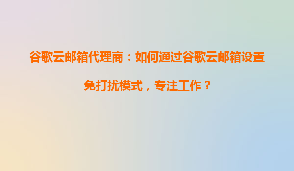 2025-09-03谷歌云郵箱代理商:如何通過谷歌云郵箱設置免打擾模式,專注工作? 在當今快節(jié)奏的工作環(huán)境中,郵件處理成為效率提升的關鍵一環(huán)。谷歌云郵箱(GoogleWorkspace)憑借其強大的功能和靈活...