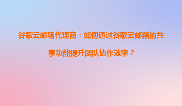 2025-09-03谷歌云郵箱代理商:如何通過谷歌云郵箱的共享功能提升團隊協作效率? 一、引言 在現代企業(yè)辦公中,高效的團隊協作是提升生產力的關鍵。隨著遠程辦公和全球化團隊的普及,如何利用工具實現無縫協作成...