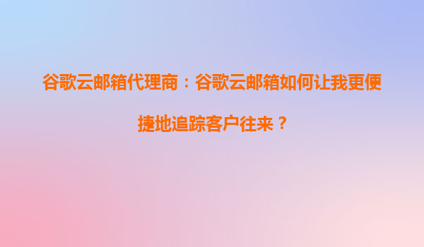 2025-08-31谷歌云郵箱代理商:谷歌云郵箱如何讓我更便捷地追蹤客戶往來(lái)? 一、谷歌云郵箱的核心優(yōu)勢(shì) 谷歌云郵箱(GmailforBusiness)作為企業(yè)級(jí)郵件解決方案,依托谷歌云的強(qiáng)大基礎(chǔ)設(shè)施,提供了高可靠性、安全性和...