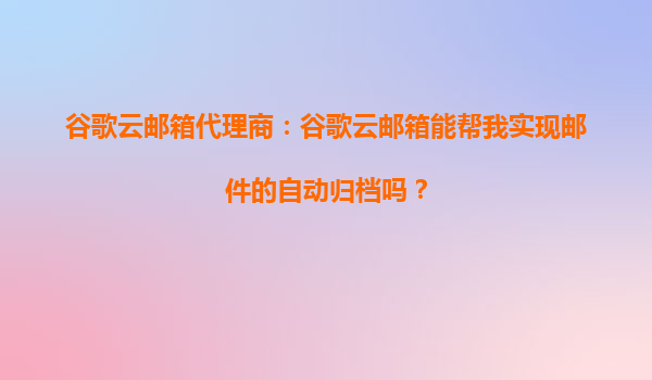 2025-08-31谷歌云郵箱代理商:谷歌云郵箱能幫我實(shí)現(xiàn)郵件的自動歸檔嗎? 一、谷歌云郵箱的自動歸檔功能概述 谷歌云郵箱(GmailforBusiness)作為企業(yè)級郵件解決方案,提供了強(qiáng)大的郵件管理功能,其中自動歸檔是其核心...