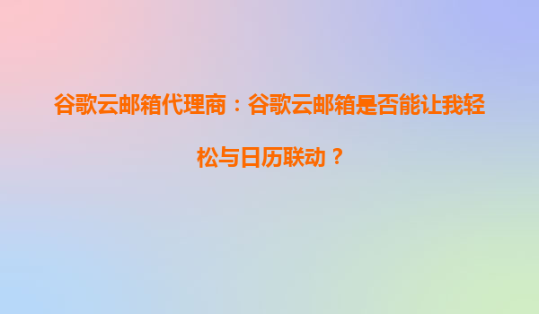 2025-08-30谷歌云郵箱代理商解析:谷歌云郵箱如何實(shí)現(xiàn)與日歷的高效聯(lián)動? 一、谷歌云郵箱的核心優(yōu)勢 谷歌云郵箱(GmailforBusiness)作為企業(yè)級郵件解決方案,依托谷歌強(qiáng)大的云端基礎(chǔ)設(shè)施,提供以下核心優(yōu)勢: ...