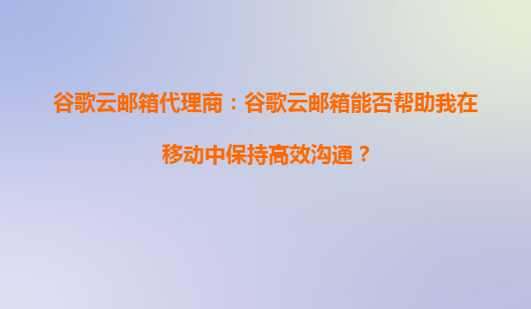 2025-08-31谷歌云郵箱代理商:谷歌云郵箱能否幫助我在移動中保持高效溝通? 引言 在當(dāng)今快節(jié)奏的商業(yè)環(huán)境中,移動辦公已成為常態(tài)。無論是出差、通勤還是遠(yuǎn)程協(xié)作,高效的...
