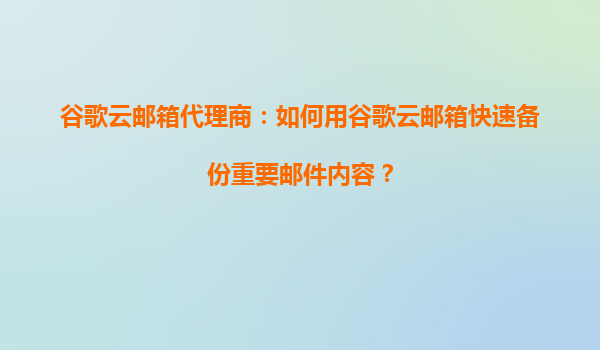 2025-08-30谷歌云郵箱代理商:如何用谷歌云郵箱快速備份重要郵件內(nèi)容? 谷歌云郵箱的核心優(yōu)勢 谷歌云郵箱(GmailforBusiness)作為企業(yè)級郵件解決方案,憑借其強大的云端存儲能力和無縫集成的生態(tài),成為全球企業(yè)備...