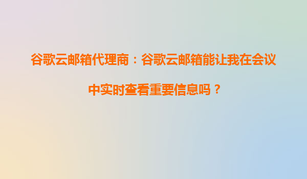 2025-08-30谷歌云郵箱代理商:谷歌云郵箱能讓我在會議中實時查看重要信息嗎? 在現(xiàn)代商業(yè)環(huán)境中,高效溝通和即時信息獲取是成功的關(guān)鍵。無論是跨國企業(yè)還是中小型企業(yè),都需要一個穩(wěn)定、安全且功能強大的電子郵件系統(tǒng)來支...