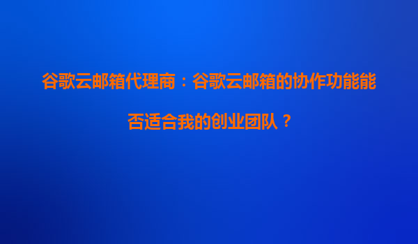 2025-08-30谷歌云郵箱代理商:谷歌云郵箱的協(xié)作功能能否適合我的創(chuàng)業(yè)團隊? 在當今快節(jié)奏的商業(yè)環(huán)境中,高效的團隊協(xié)作是創(chuàng)業(yè)公司成功的關(guān)鍵因素之一。谷歌云郵箱(GmailforBusiness)作為谷歌云服務(wù)的一部分,不僅提供...
